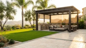 Whether you’re planning a complete Newport Beach backyard design overhaul or targeted Mission Viejo landscaping enhancements, thoughtful design ensures that each element complements the next. Consider how the colors and textures of your pavers flow into the vibrant green of your artificial turf. Envision how your pergola provides a shaded transition to your outdoor kitchen, making the entire space feel interconnected and intentional.