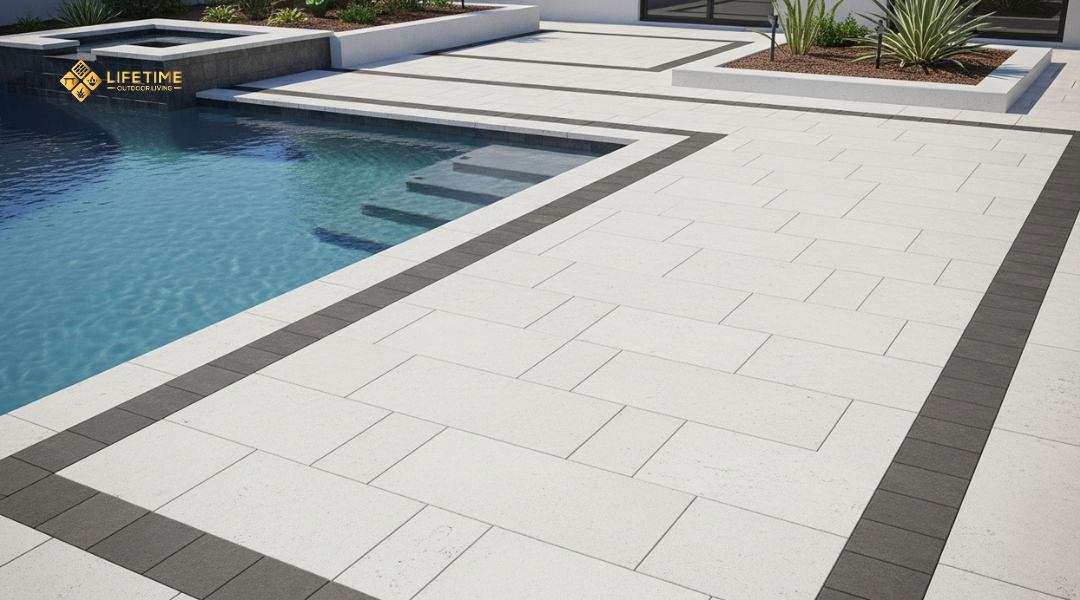 You can also use paver patterns to frame the pool area. A border in a contrasting color helps define the edge, making the transition from deck to water more visible.