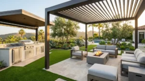 - Choose Your Features: Prioritize your outdoor kitchen components, seating arrangements, shade structures (pergolas Orange County), fire features, and green elements (artificial turf Orange County).